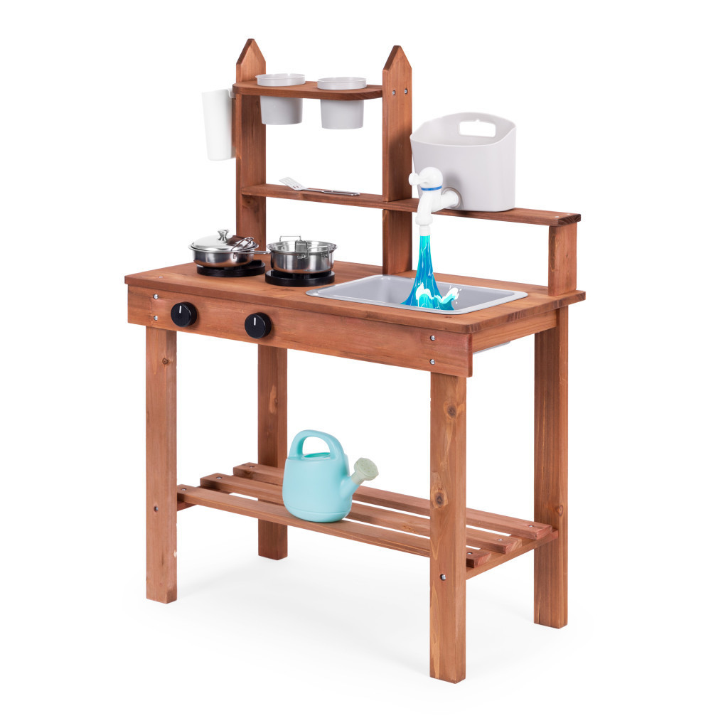 Az ételkészítés és a kerti játék nyújtotta lehetőségek kombinációja egy egyedülálló játékot hoz létre - egy sárkonyhát. Különleges felépítésének és a megfelelően kiválasztott anyagoknak (fenyőfa) köszönhetően (fenyőfa), ez a konyhamodell alkalmas játékra nem csak a gyerekszobában, hanem a kertben vagy a teraszon is. Ennek köszönhetően a gyerekek különböző ételeket készíthetnek homokból, sárból, kavicsokból és mindenből, amit a környéken találnak, a játék ezen formája miatt a sárkonyha gyorsan kedvenc játékává válik.