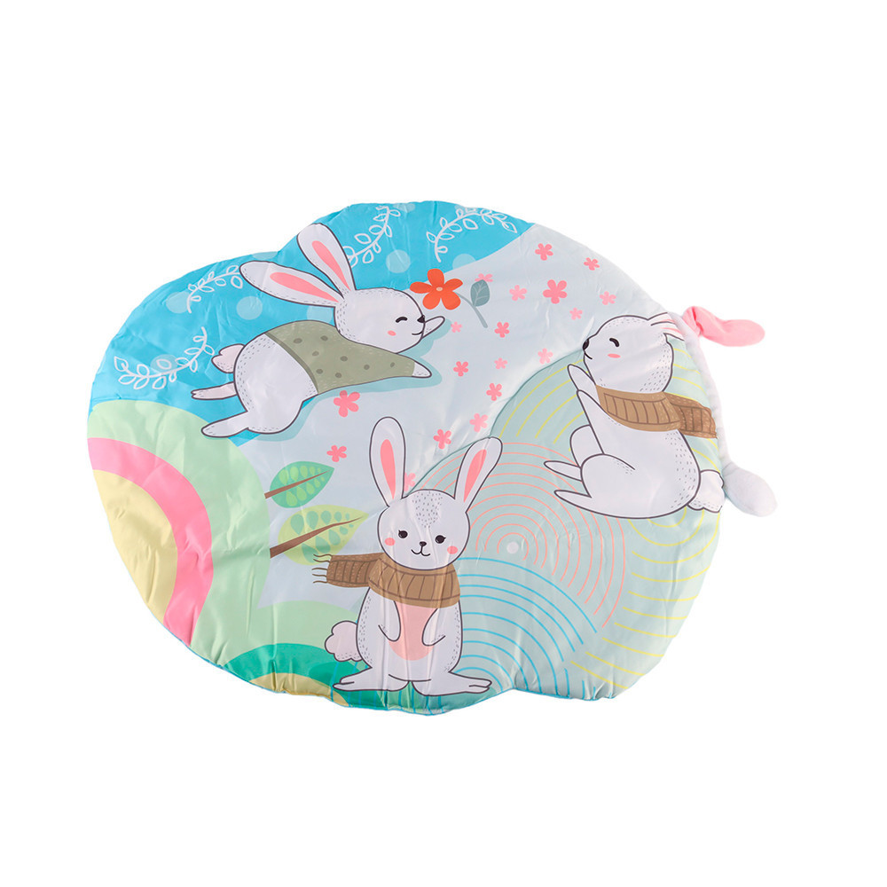 A szőnyegbe varrt plüss nyuszi fülek és farkinca mozgathatók, megfoghatók, így a kicsi számára újabb érzékszervi élményt nyújtanak. Ezek a részletek segítik a tapintás fejlesztését, és hosszabb ideig lekötik a babát.