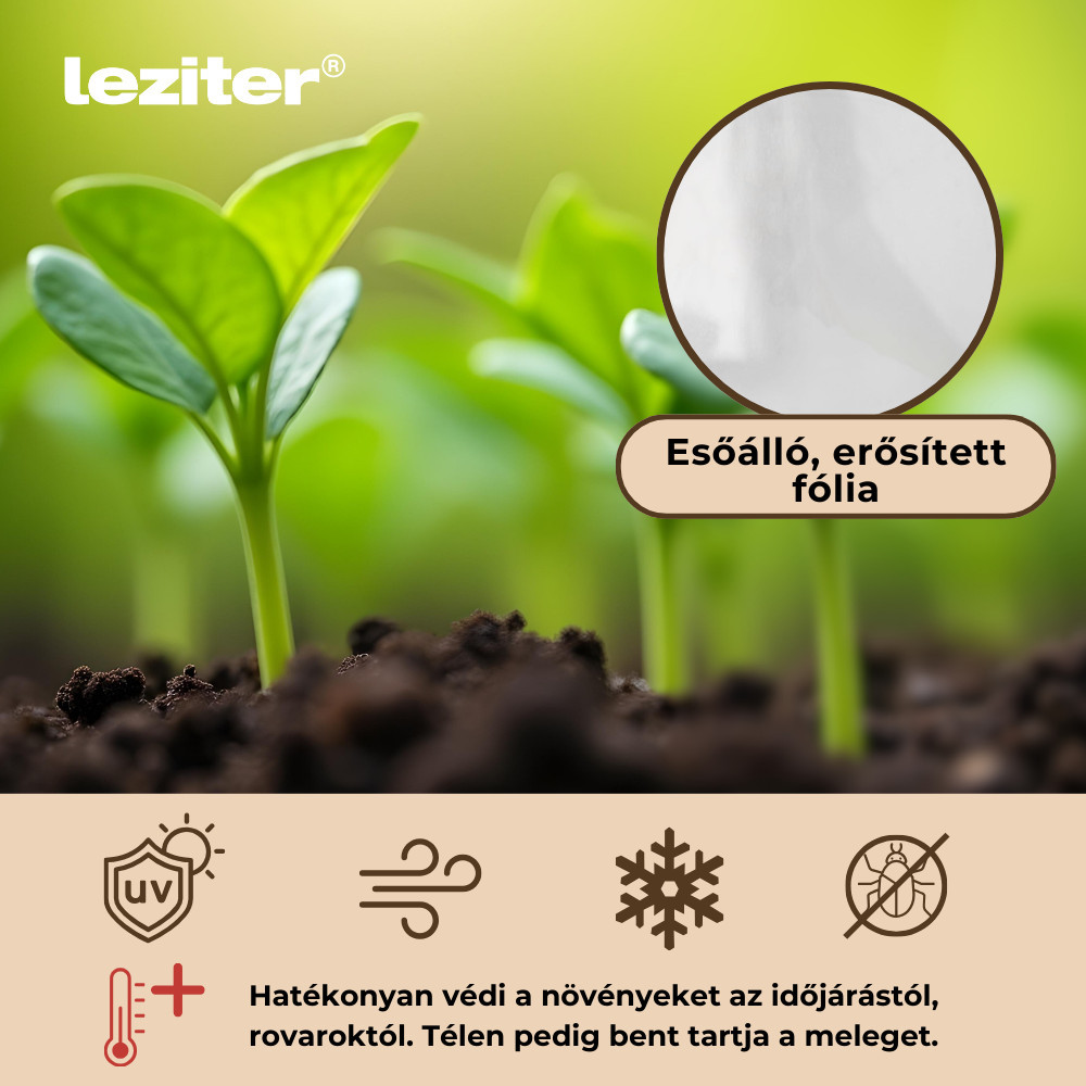 A Leziter magágy fólia ideális választás azok számára, akik kiegyensúlyozott körülményeket szeretnének biztosítani a palántáknak a fejlődésük kezdeti szakaszában. A fedett kialakítás csökkenti a fiatal növényeket érő hatásokat, miközben lehetővé teszi a megfelelő légmozgást és fényáteresztést. A hálós erősítésű borítás tartást ad a fóliának, és hozzájárul ahhoz, hogy a belső térben stabilabb mikroklíma alakuljon ki.
