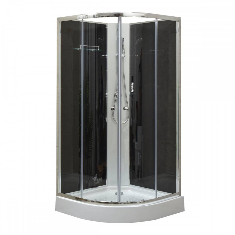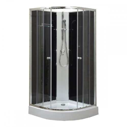 íves zuhanykabin zuhanytálcával és teljes felszereltséggel