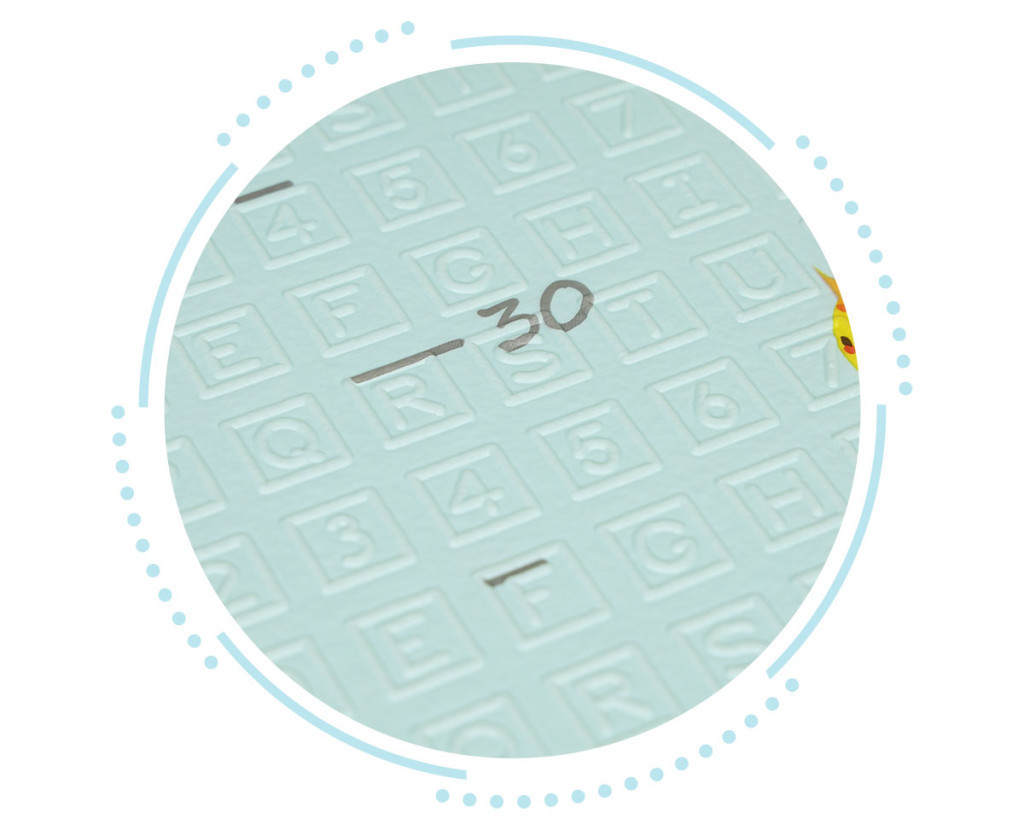 • Csúszásgátló kiemelkedések, a szőnyeg mindkét oldalán csúszásgátló kiemelkedésekkel rendelkezik, ami biztosítja a stabilitást a különböző típusú felületeken. A szőnyeg játék közben nem mozog, ami garantálja a gyermek biztonságát.