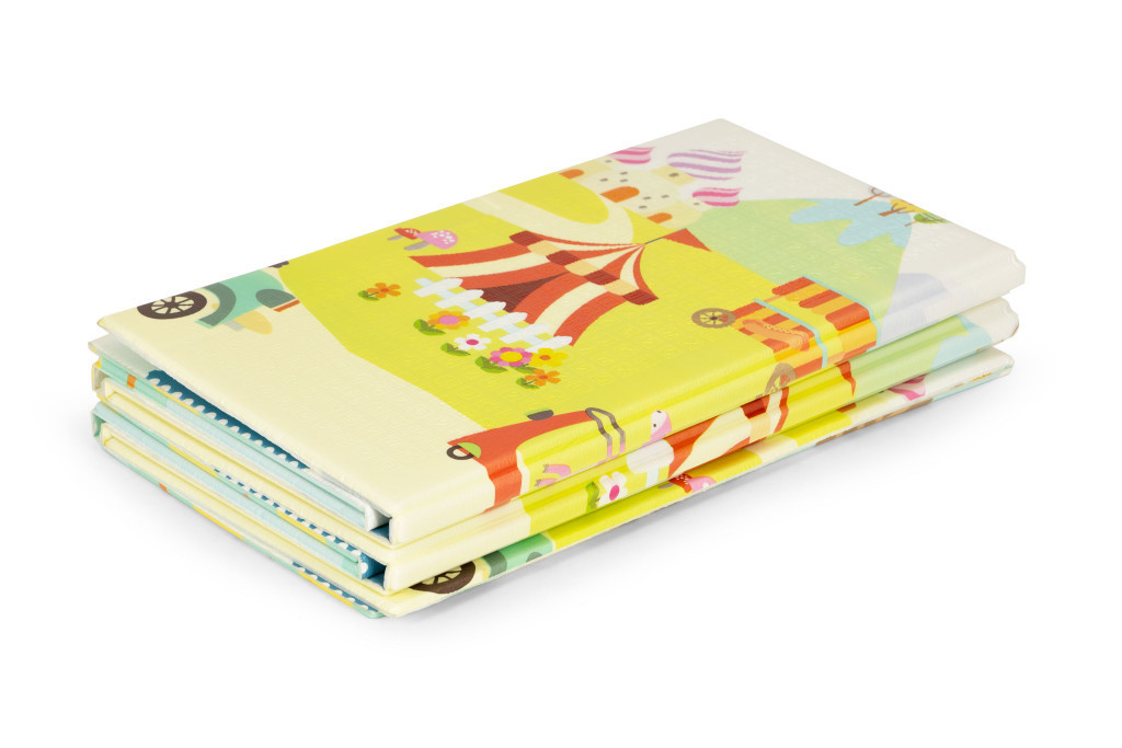 A szőnyeg kétoldalas, ami azt jelenti, hogy a gyerekek kétszeres mennyiségű szórakozást és tanulást szerezhetnek vele. Az egyik oldalon egy csodálatos cirkusz található állatokkal, járművekkel és más szereplőkkel, ami serkenti a képzeletet és arra ösztönöz, hogy alkossák meg saját történeteiket és kalandjaikat.