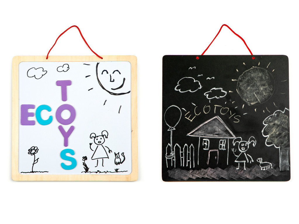 A játéknak két különböző oldala van, aminek köszönhetően mindegyik más-más szórakozásra használható. A kis művészek rendelkezésére áll egy hagyományos fekete tábla krétával való rajzoláshoz és egy fehér tábla radírozható filctollal való rajzoláshoz vagy mágneses betűk felragasztásához.