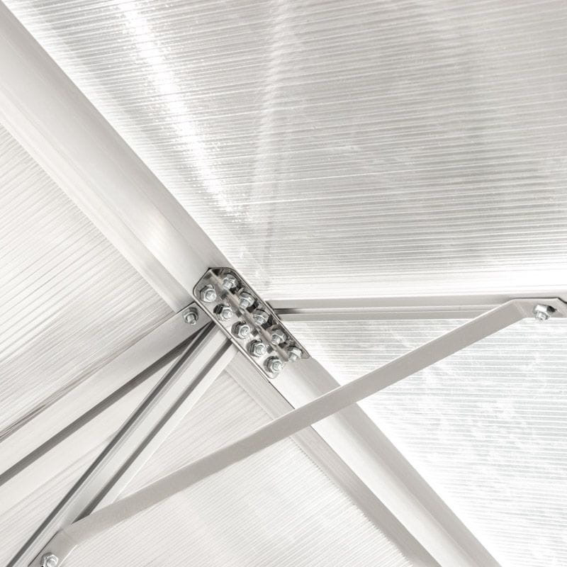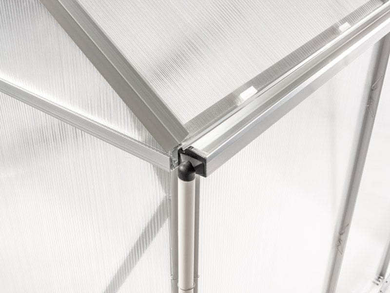 A kerti üvegház falai 4 mm vastag, átlátszó polikarbonátból készülnek, biztosítva a megfelelő fényáteresztést, ami elősegíti a termés megfelelő növekedését. Az üvegház formáját gondosan úgy alakították ki, hogy a fényt egyenletesen oszlassa el benne. A szerkezet további előnye a tető kedvező formája, amely lehetővé teszi a vízgőz szabad eltávozását, ami megvédi a növényeket a betegségektől.