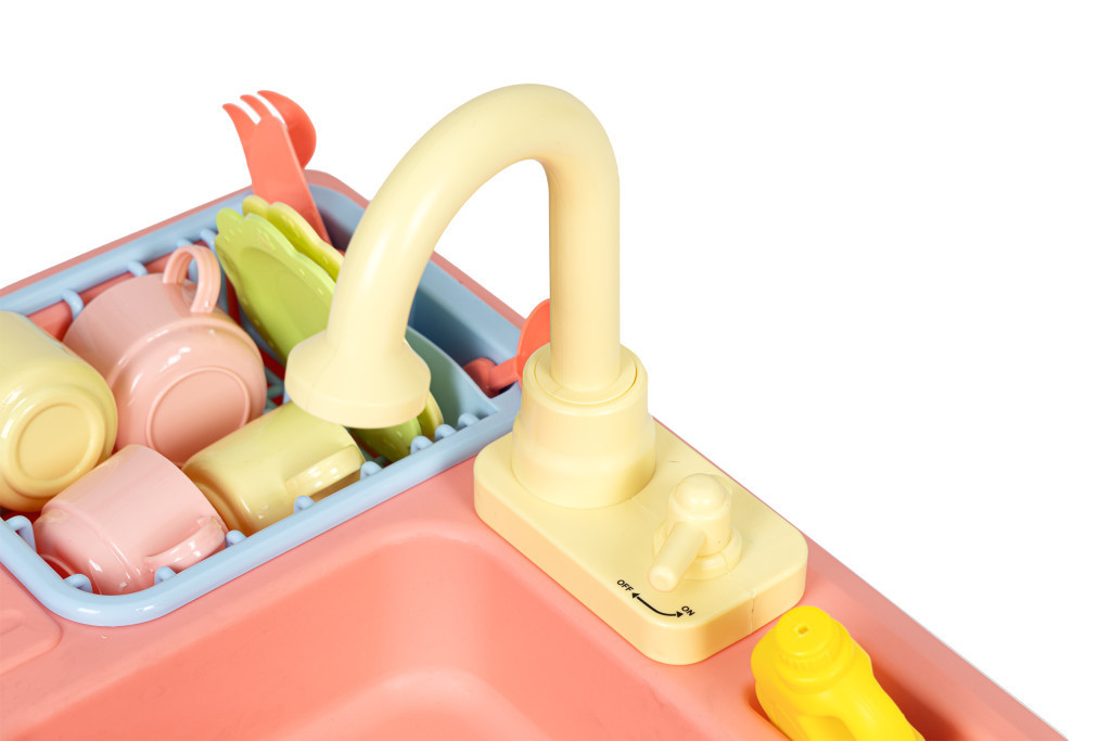 A mosogató dupla aljjal rendelkezik, amikor vizet önt, az kitölti a mosogató alja és a tál közötti teret, amelybe a vizet helyezi. Ebbe a térbe egy szivattyúval felszerelt csapalap is van beépítve. Csakúgy, mint egy igazi konyhában, csak el kell forgatni a csapot, és a víz elkezd folyni a csapból.